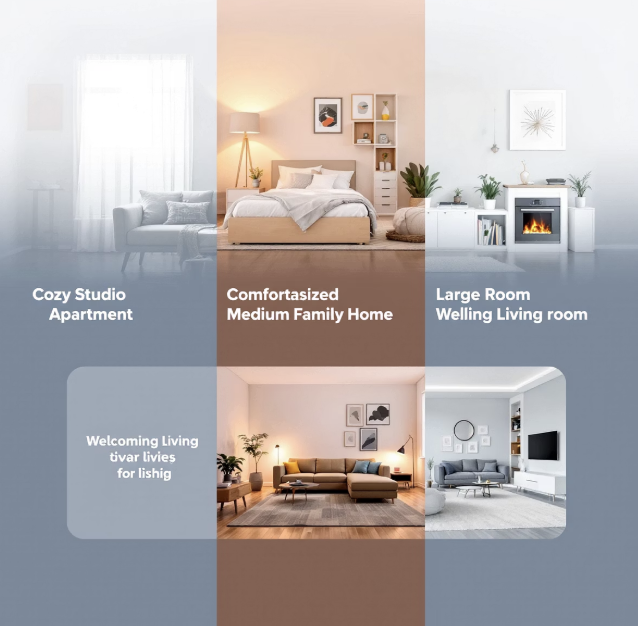 - 프리미엄 스탠드형 모델 A는 대가족·거실용, 기본 벽걸이형 모델 B는 1인 가구·원룸, 중형 모델 C는 신혼 부부·중형 가구에 최적화되어 있습니다.