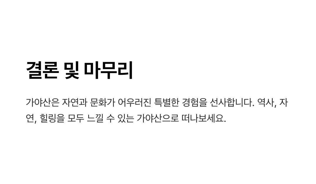 - 소개: 경상남도 지역 내 가야산과 주변 관광지 정보, 숙박 및 음식점 추천을 제공합니다. 여행 계획에 유용한 지역 정보를 얻을 수 있습니다.