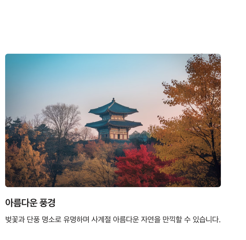 - 봄: 벚꽃과 야생화가 어우러진 풍경.