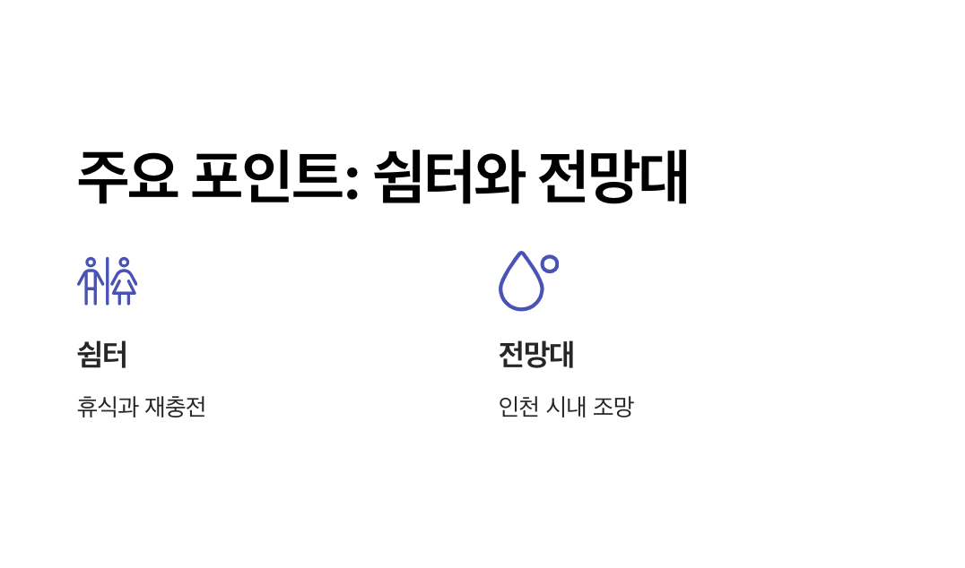 - 인천 시내와 서해 바다가 한눈에 보이는 장소로, 일몰과 야경도 감상할 수 있어 인기 포인트입니다.