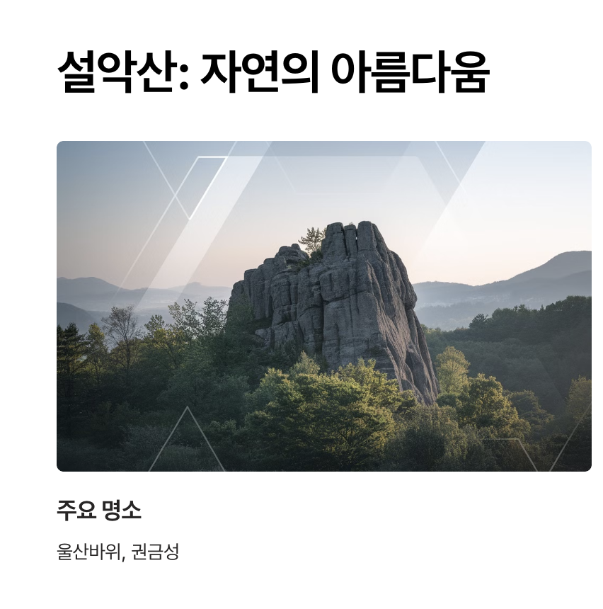- 주요 명소: 울산바위, 권금성, 설악폭포, 대청봉.