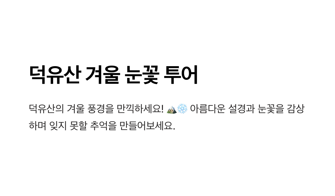 겨울 산행 시에는 방한 준비를 철저히 하고 안전을 최우선으로 하여 덕유산의 매력을 만끽해 보세요. 이번 겨울, 덕유산 눈꽃 여행으로 특별한 추억을 만들어 보시길 바랍니다!