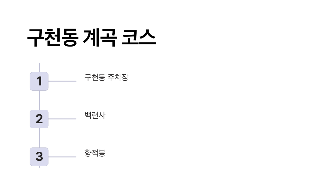 코스 경로: 구천동 주차장 ➤ 백련사 ➤ 구천동 계곡 ➤ 향적봉