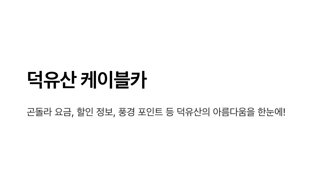 | 3. 네이버 예약 - 덕유산 케이블카 | 네이버 예약을 통해 덕유산 케이블카 티켓을 미리 구매하고 할인 혜택을 받을 수 있습니다. 사전 예약이 필요한 성수기에는 필수입니다. |