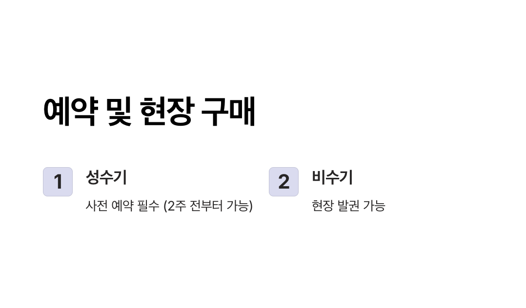 - 성수기(10월~2월 주말 및 공휴일)에는 사전 예약 필수입니다.