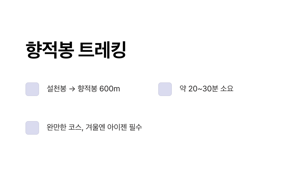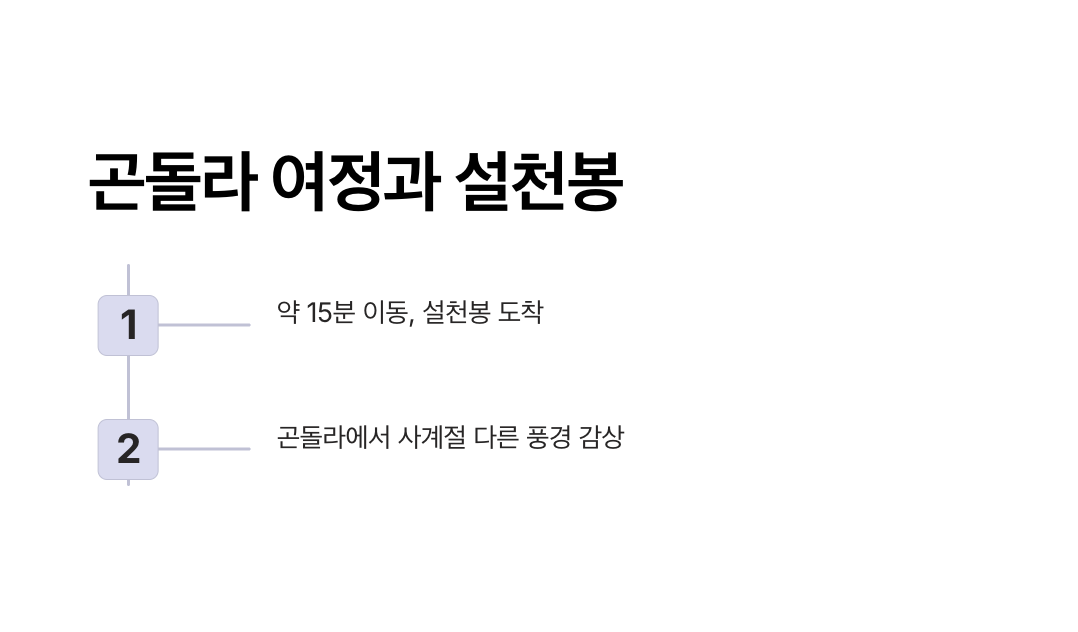 - 코스 난이도: 비교적 완만한 등산로로, 초보자도 쉽게 오를 수 있습니다.