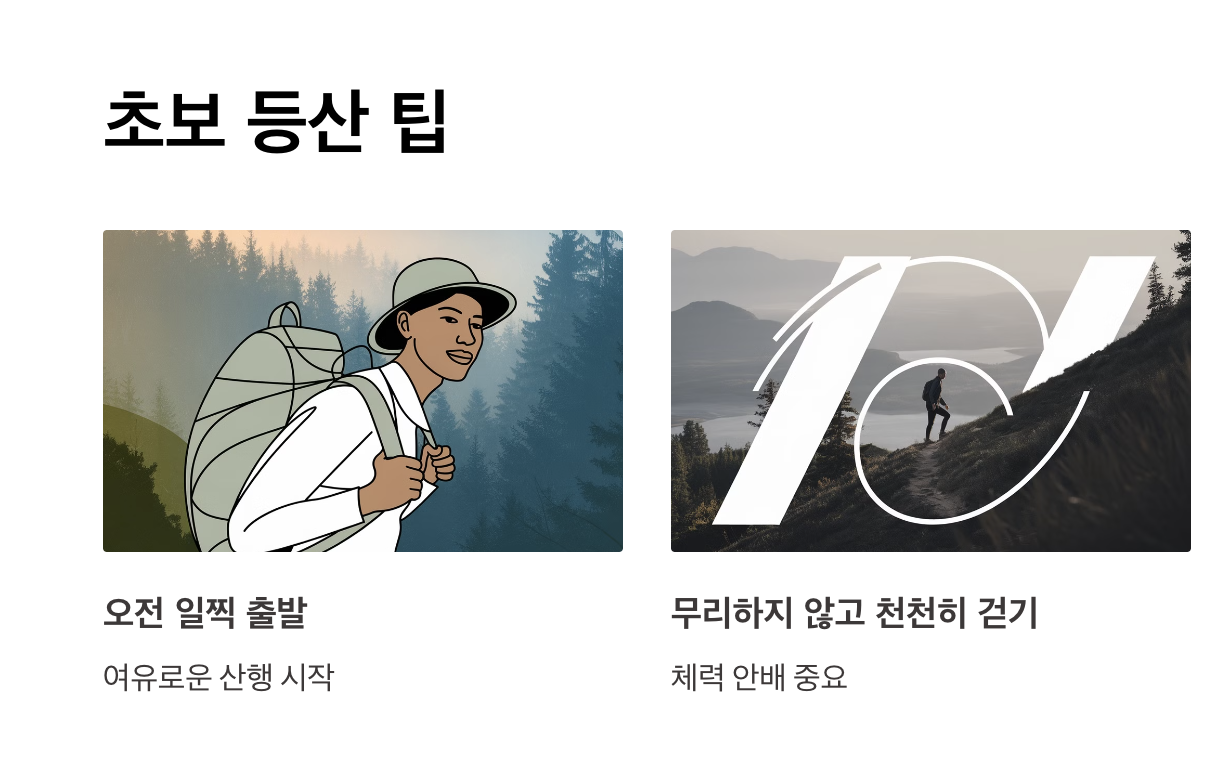 - 등산 스틱: 초보자는 등산 스틱을 사용하면 체력 소모를 줄이고 무릎 부담을 덜 수 있습니다.