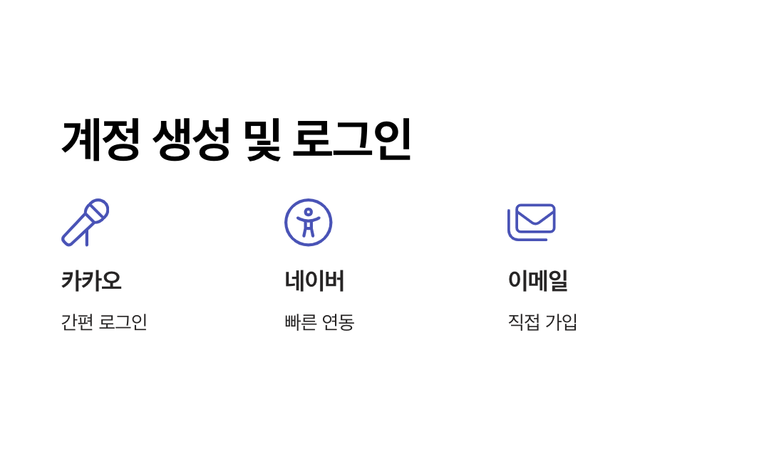 - 필수 동의 항목에 체크한 후, 계정 연동 또는 이메일 정보 입력으로 가입을 완료합니다.