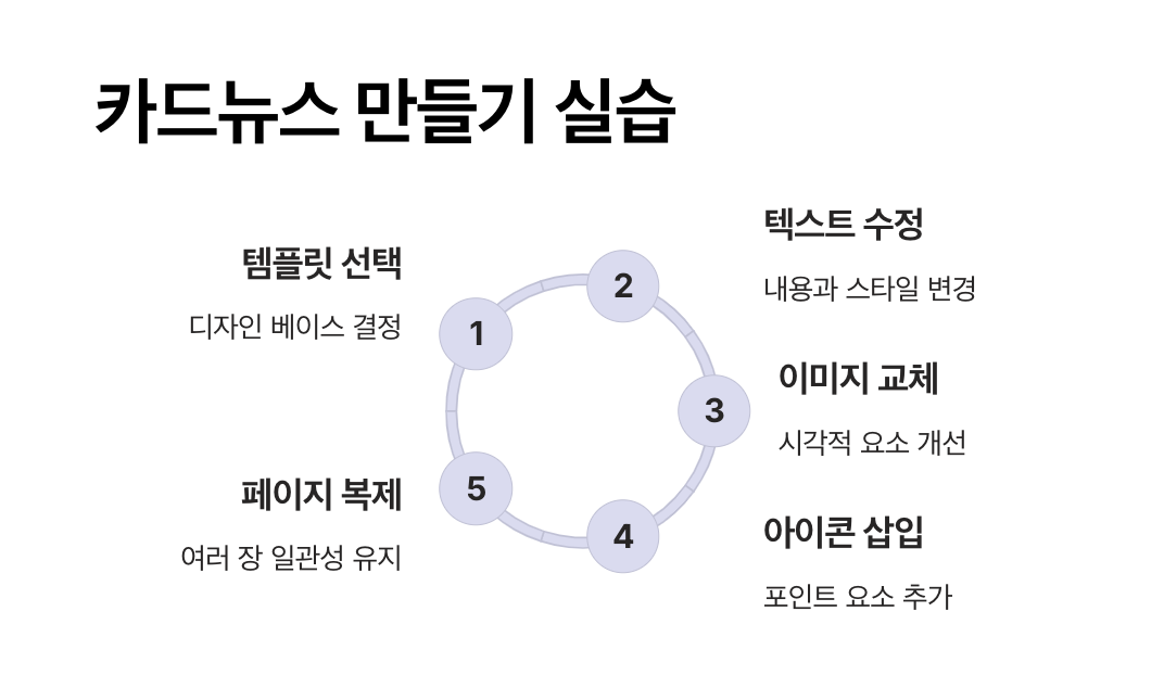이제 기본기를 익혔다면, 실제로 간단한 카드뉴스 1페이지를 함께 만들어보며 연습해보는 것이 가장 좋습니다.