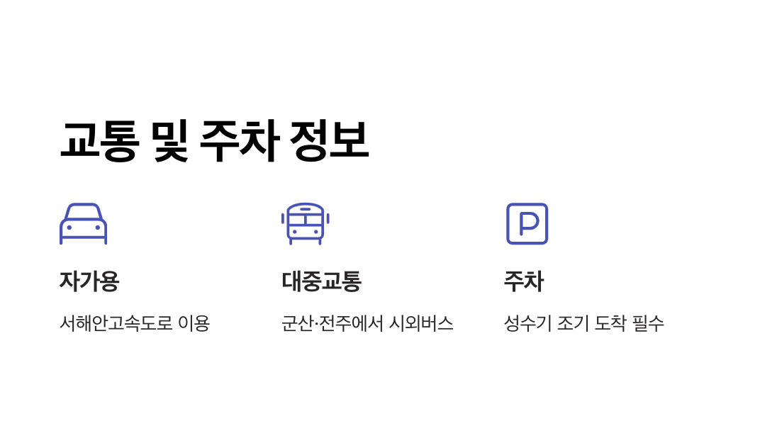 - 주차 정보: 내소사 탐방지원센터와 격포해수욕장에는 넉넉한 주차 공간이 마련되어 있으며, 주차 요금은 2,000원~3,000원 수준입니다.