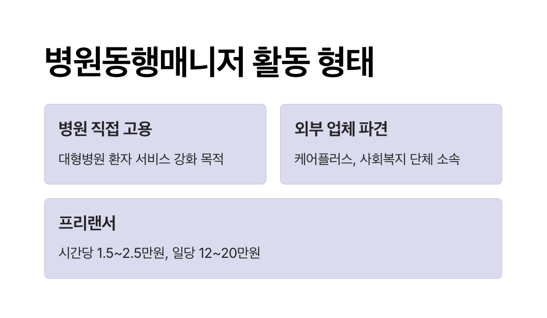 - 전문성: 기존 자원봉사나 가족 동행과 달리, 매니저는 응급 상황 대처, 복약 지도 등 의료 환경에 특화된 교육을 이수하여 더 안전하고 정확한 지원을 제공합니다.