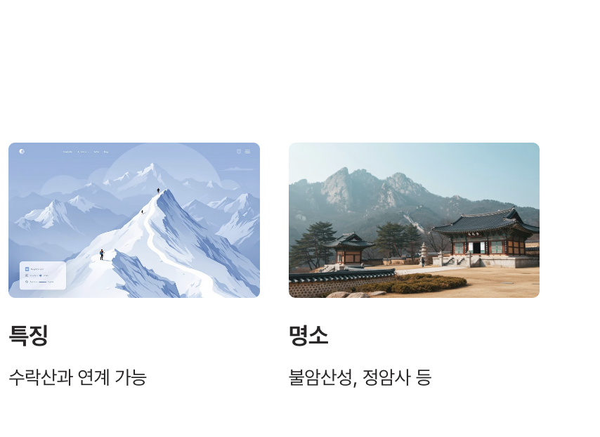 - 겨울: 눈 덮인 산세를 즐기고 싶다면 고급 코스 추천. 단, 미끄럼 방지를 위해 아이젠과 방한 장비를 반드시 준비해야 합니다.