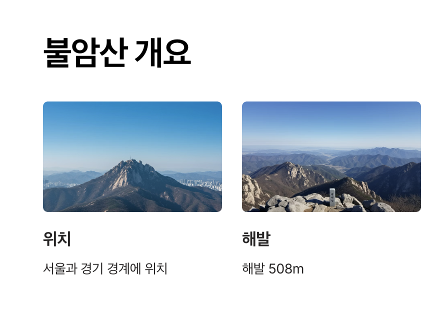 - 가을: 단풍이 절경을 이루는 중급 코스 (불암산성 경유) 추천. 정상에서 바라보는 단풍 절경이 뛰어나며, 가을철에는 등산객이 많아 주말보다는 평일 등산을 추천합니다.