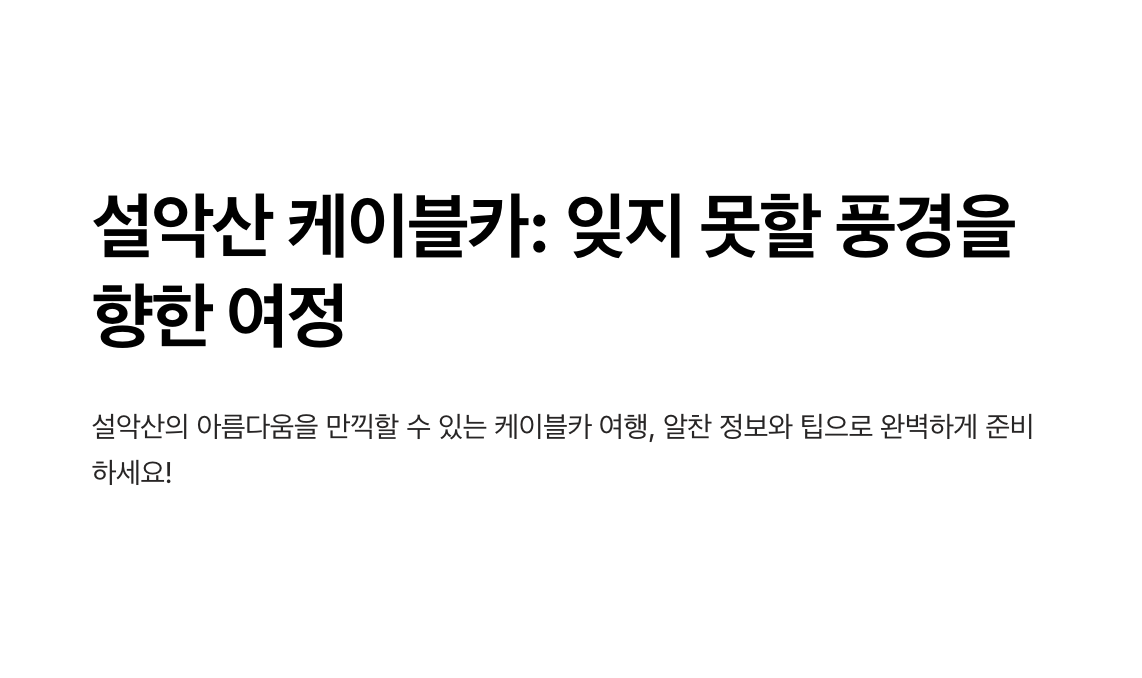 방문 전 운영 시간, 날씨, 준비물을 철저히 확인하고, 케이블카와 함께 설악산의 아름다움을 만끽해보세요.