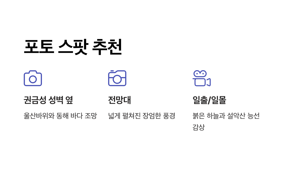 - 일출: 동해에서 떠오르는 해가 주변 봉우리와 어우러지며 환상적인 장면을 만들어냅니다.