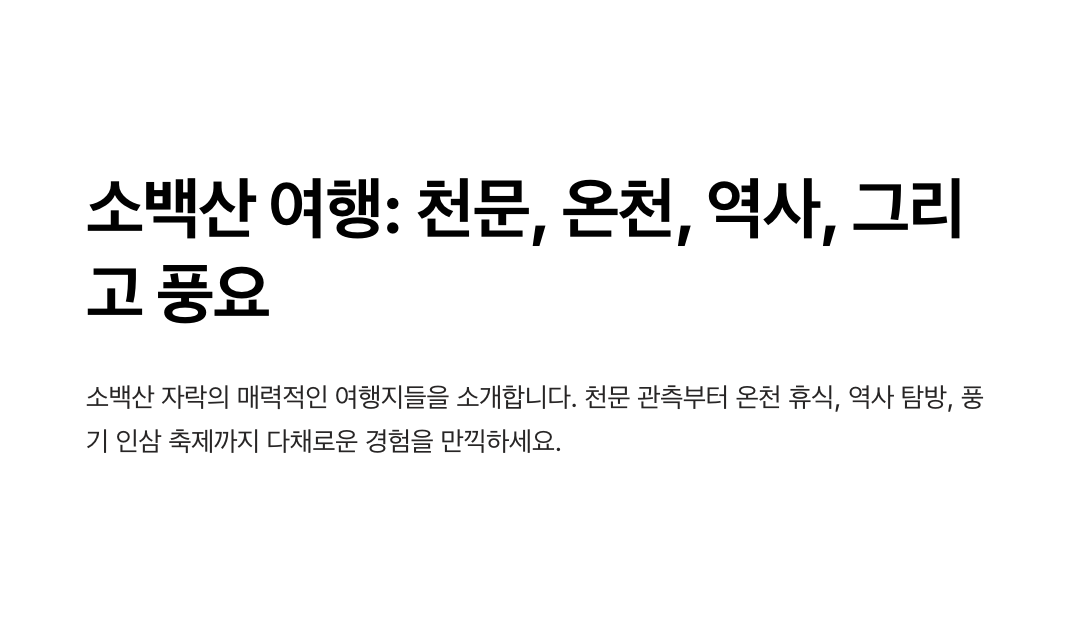 소백산은 사계절 내내 아름다운 자연경관을 자랑하는 국립공원으로, 등산과 트레킹은 물론 다양한 힐링 경험을 제공합니다. 특히 소백산 주변에는 자연과 역사가 어우러진 특별한 명소들이 많아, 여행객들에게 풍부한 볼거리와 체험을 선사합니다.
