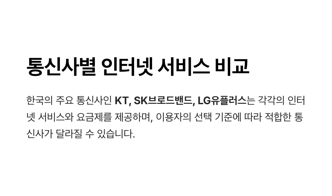 - 전국적인 광케이블(FTTH) 인프라를 기반으로 안정성이 높음.