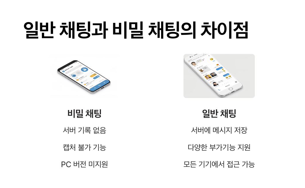 | 구분 | 일반 채팅 | 비밀 채팅 |
