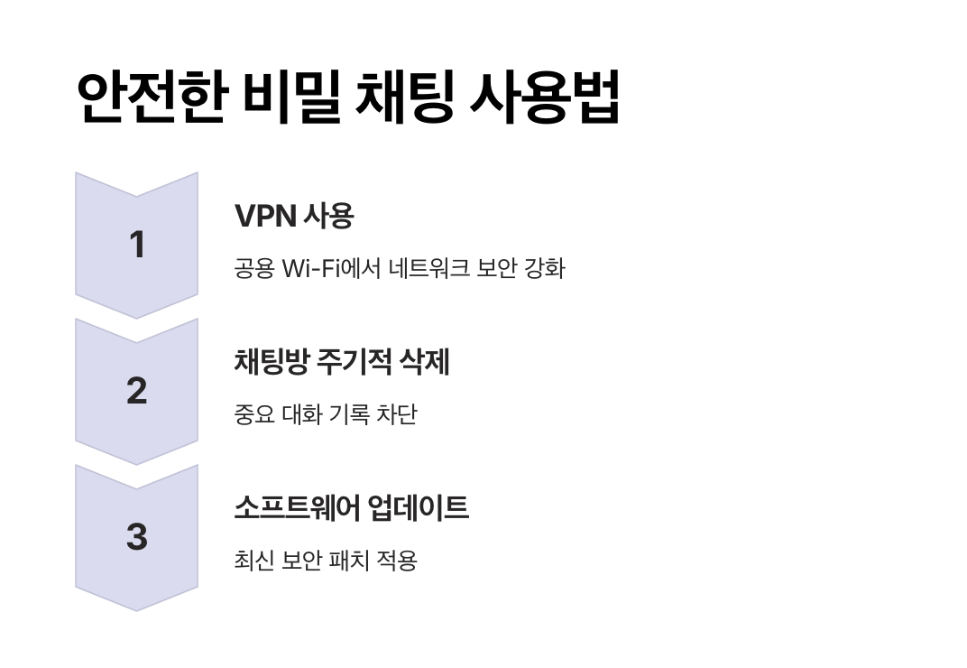 비밀 채팅 기능을 최대한 안전하게 활용하기 위해 다음과 같은 보안 전략을 함께 적용하는 것이 좋습니다.