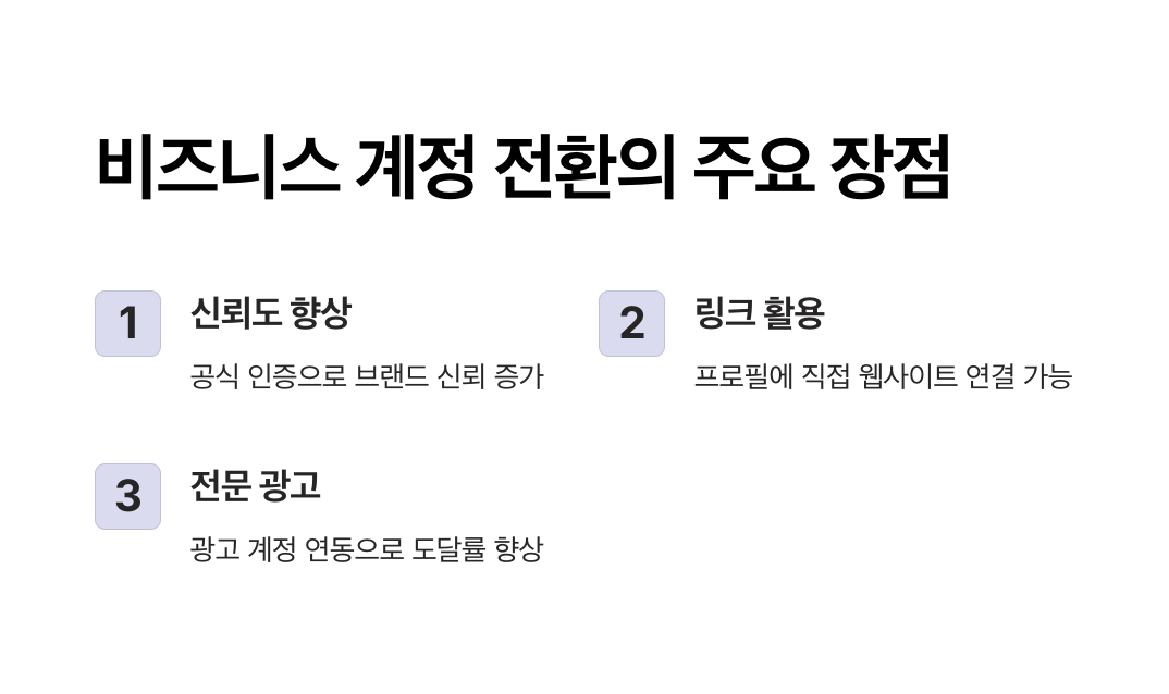 비즈니스 계정 전환 시 주요 장점