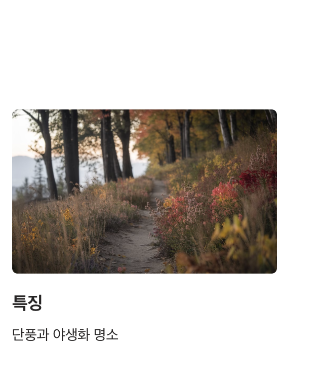 - 봄: 초록의 신록과 야생화를 감상할 수 있습니다.