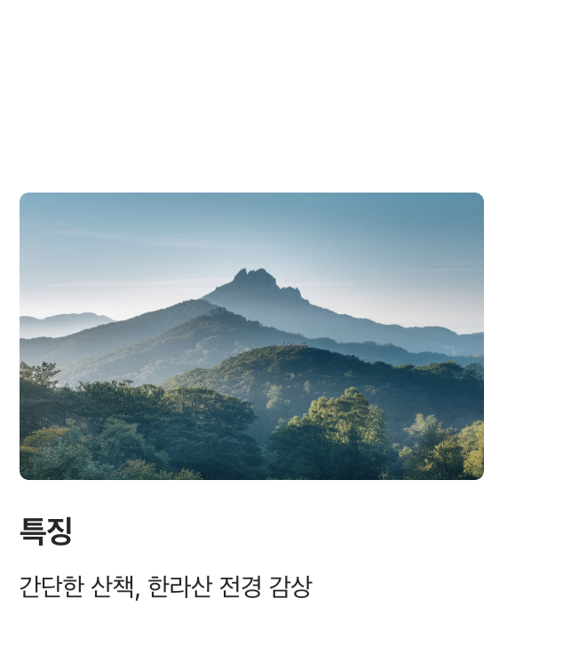 - 특히 가을철 단풍이 절경이며, 봄철에는 한라산 고유의 식생과 야생화를 만끽할 수 있습니다.