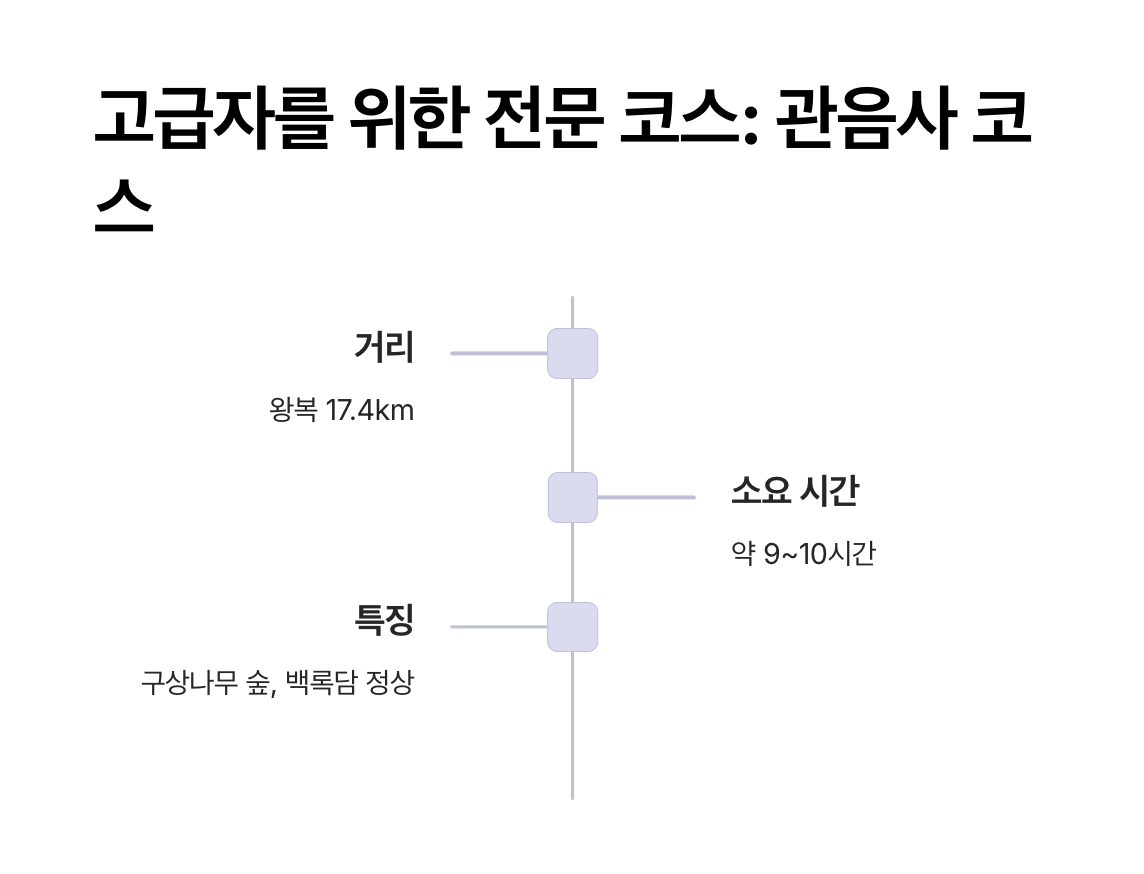 - 자신의 체력과 경험에 맞는 코스를 선택하세요.