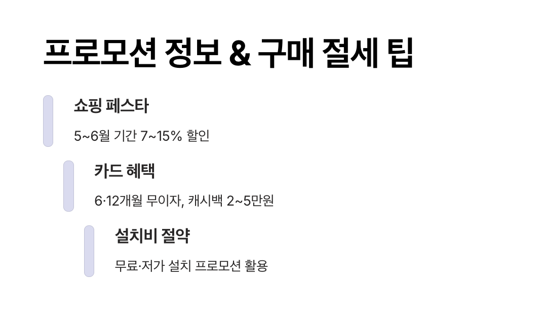 - 추가 비용이 부담된다면 프로모션 기간에 카드 할인·캐시백 혜택을 활용해 보세요.