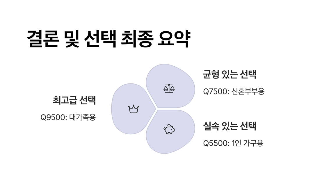| Q7500 Standard | 1,450,000 | 듀얼 냉방 코어·스마트 인버터·안심 필터 플러스 | 중형 가구·신혼 부부 |