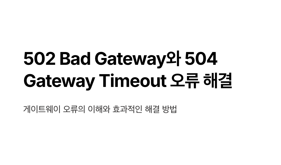 이번 글에서는 502 Bad Gateway와 504 Gateway Timeout 오류의 차이점과 각 오류의 원인 및 해결 방법을 정리하겠습니다.