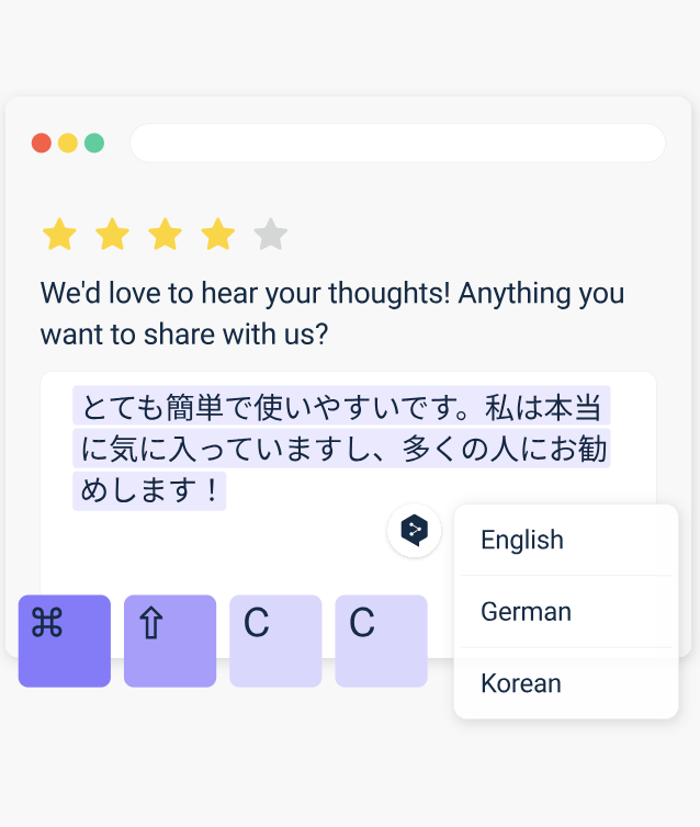 이 기능을 이용하면 웹사이트 내 텍스트를 드래그 후 바로 번역하거나, 이메일·문서 작성 중 바로 번역 결과를 확인할 수 있어 업무 흐름이 끊기지 않습니다.