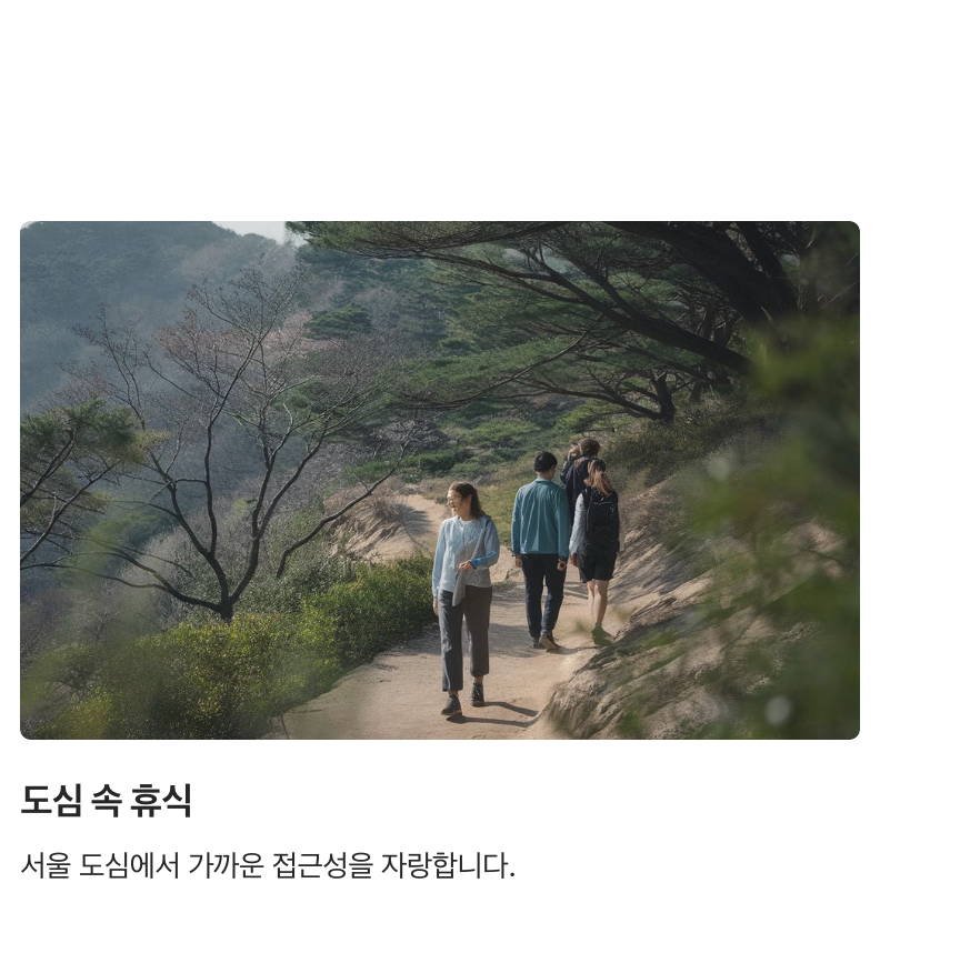 - 주요 포인트: 자연 속에서 산책을 즐기며 도시의 소음을 벗어날 수 있음.